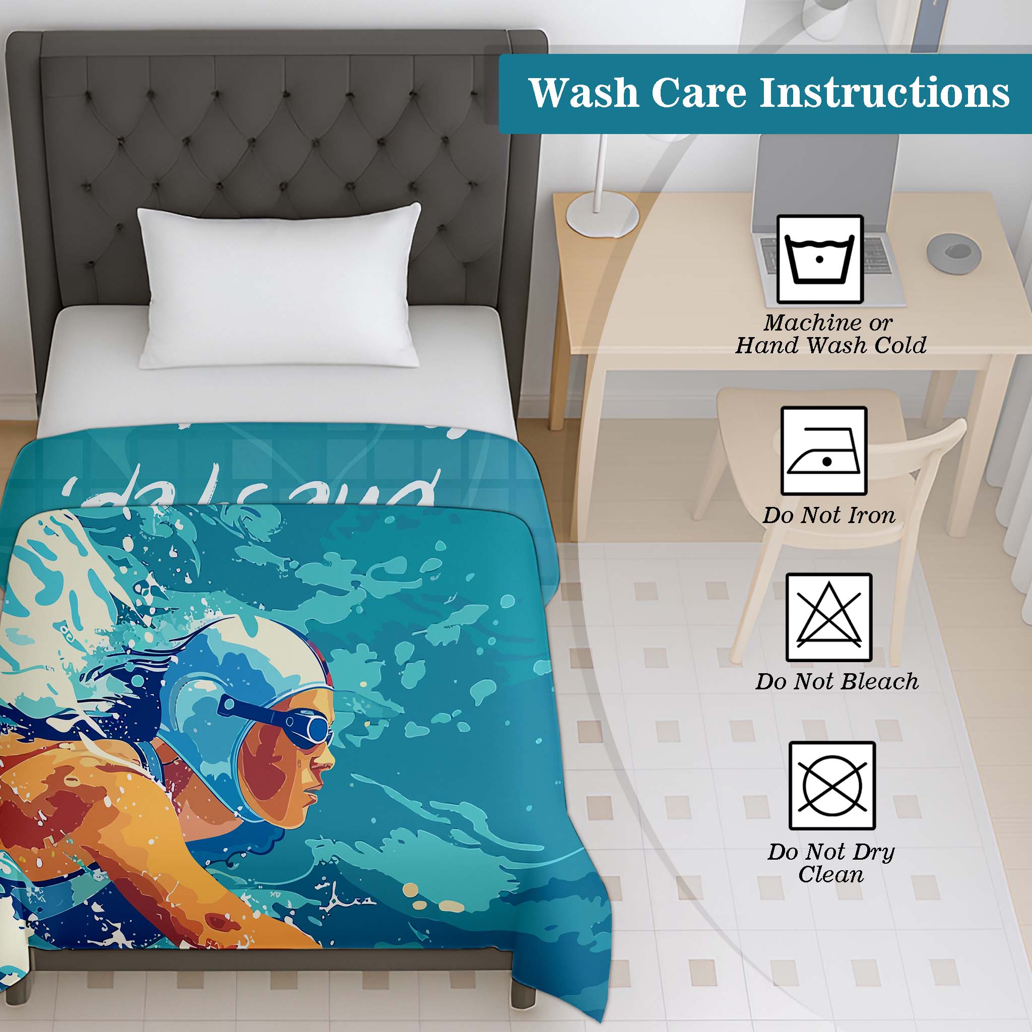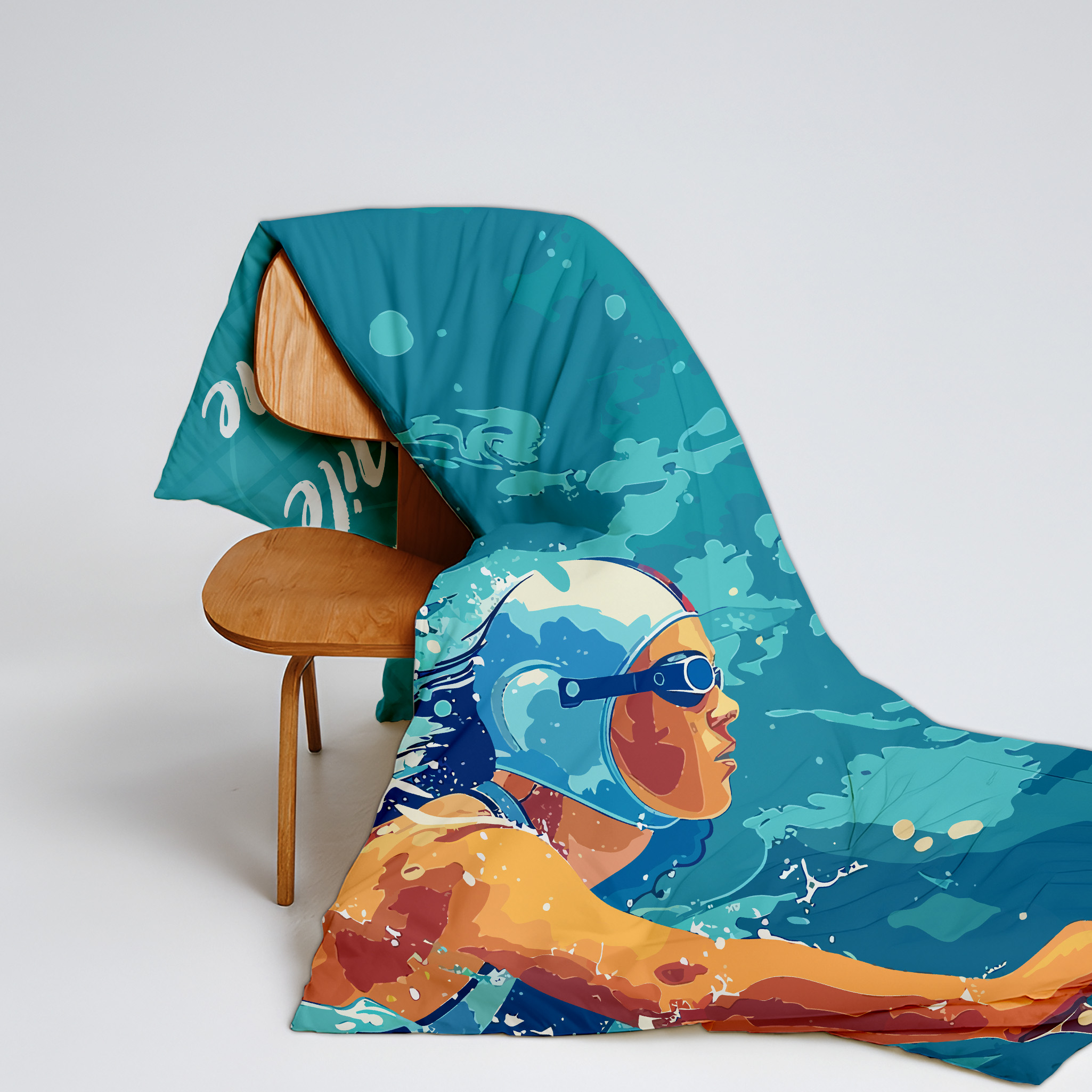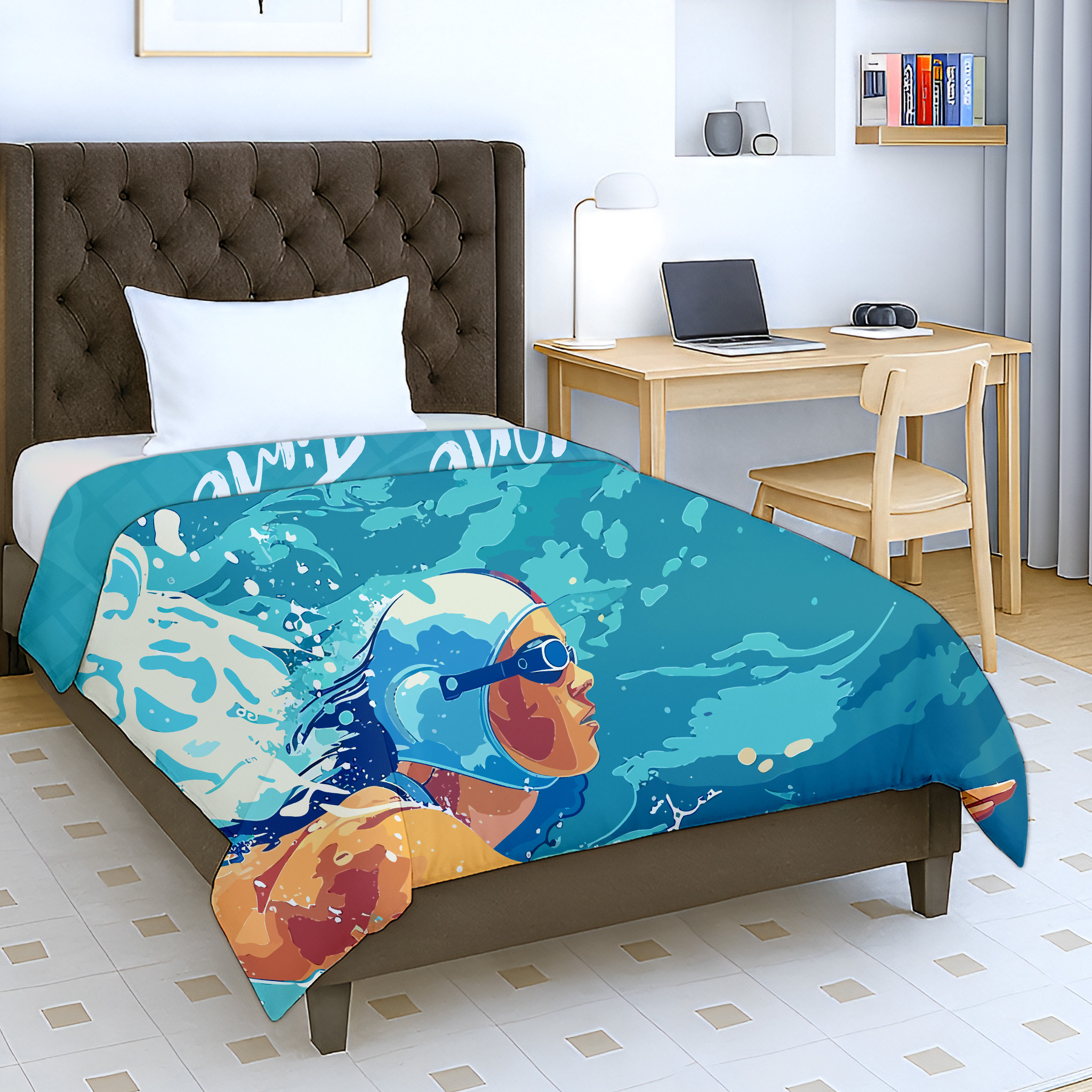 Swimming-themed kids dohar with reversible design, made from soft breathable cotton—perfect for summer, AC use, and everyday kids bedding.