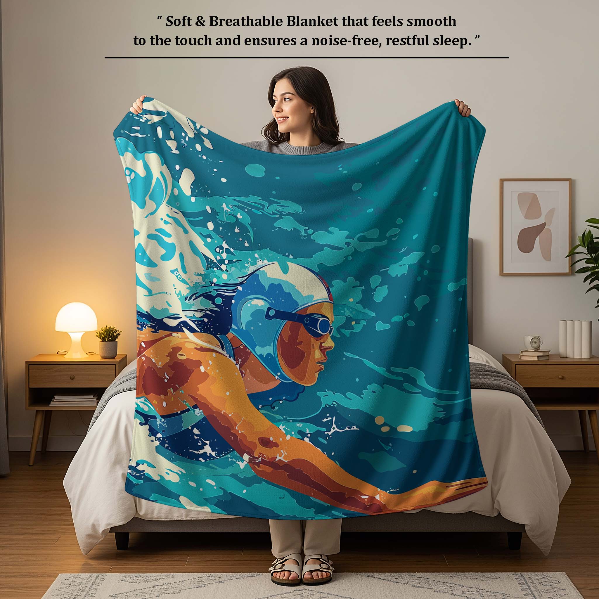 Bring a sporty and energetic vibe to your child’s bedroom with the Jindal Home Kids Aqua Sports Dohar, featuring a vibrant swimming adventure print with dynamic ocean-themed artwork. The reversible 2-in-1 design offers two stylish looks in one blanket, making it easy to refresh your child’s bedding anytime.