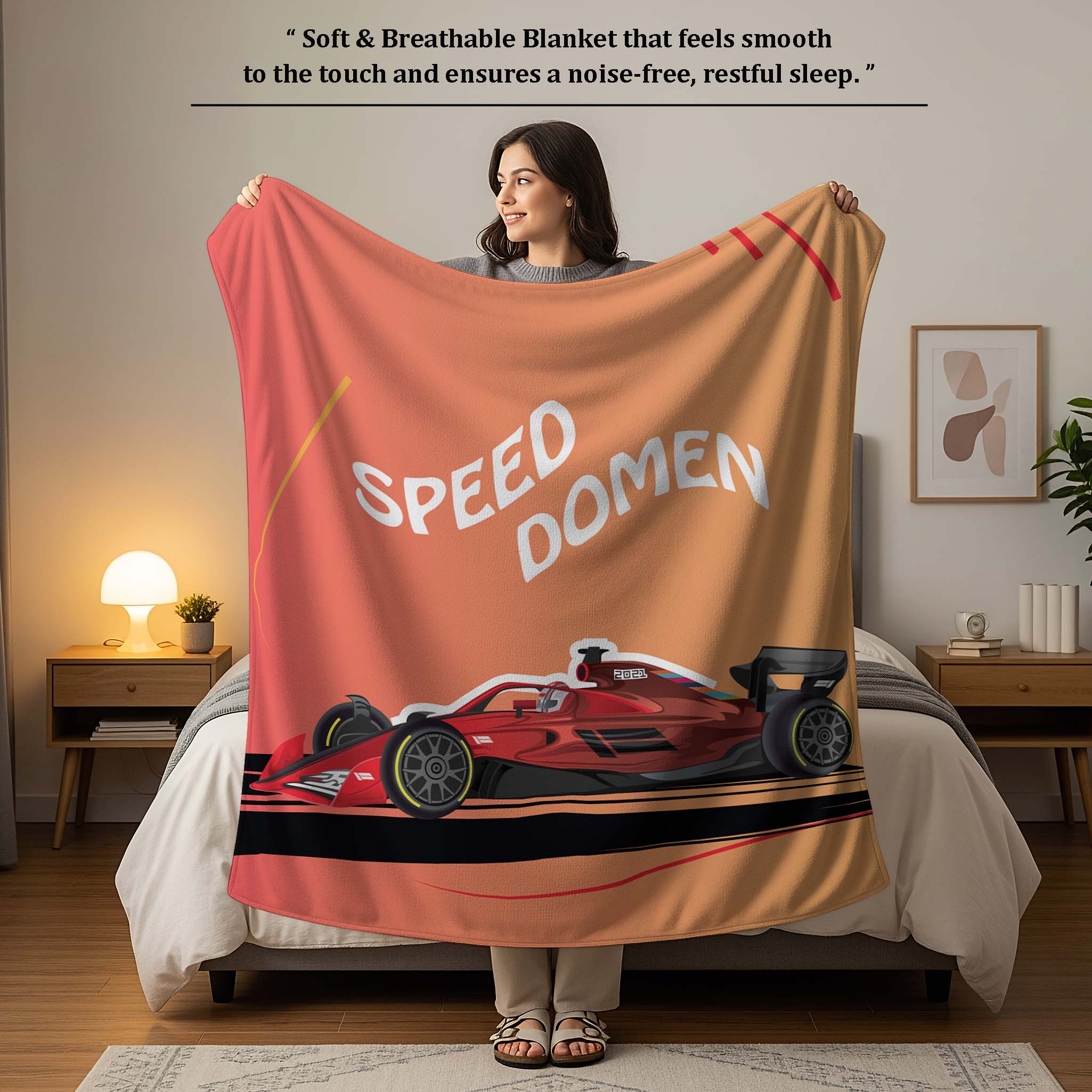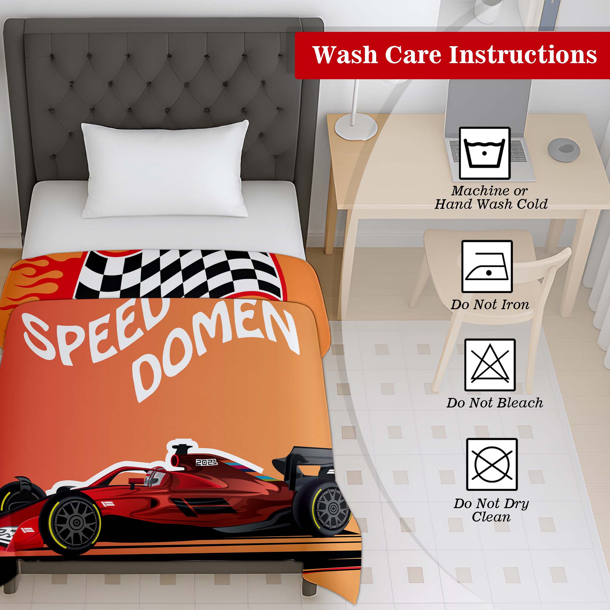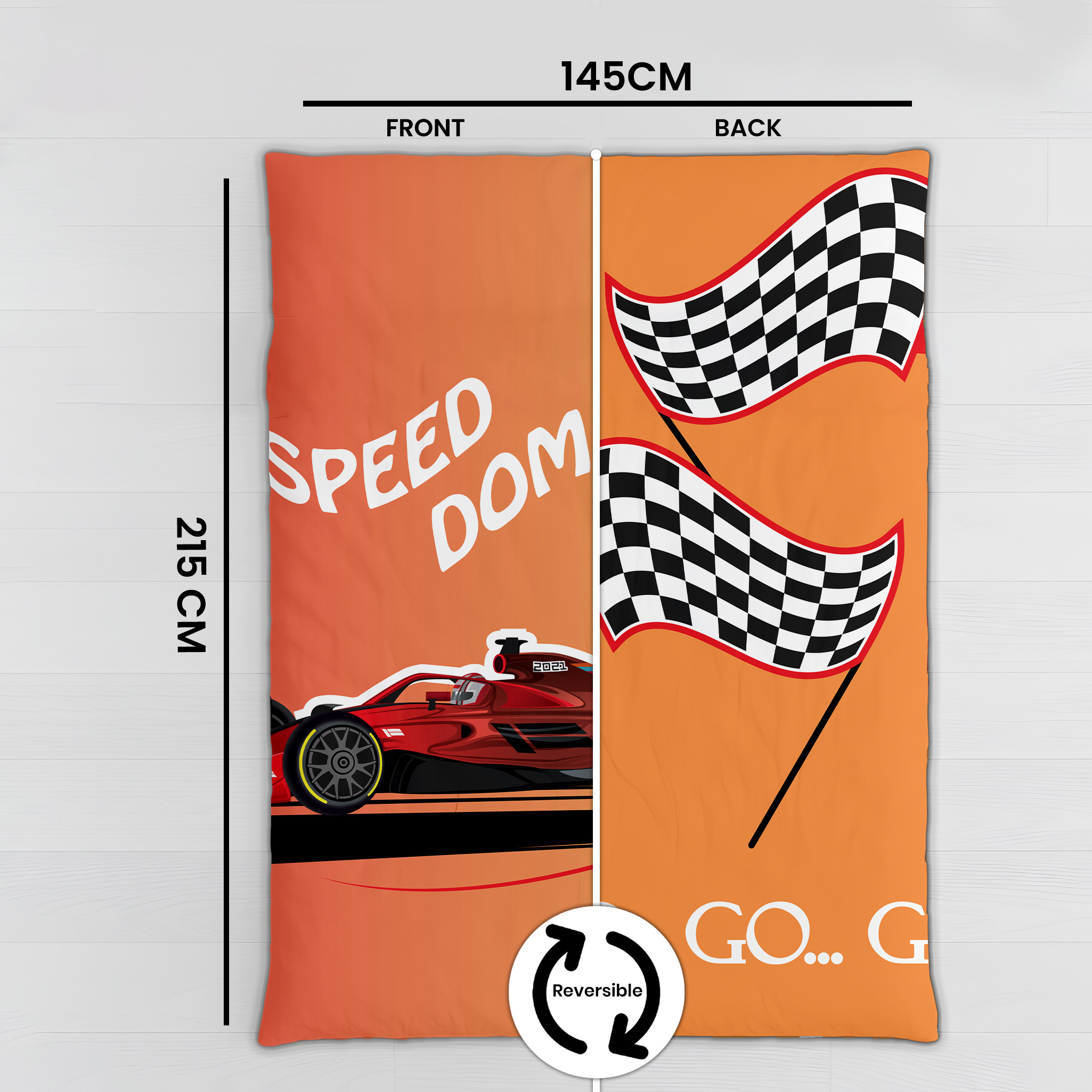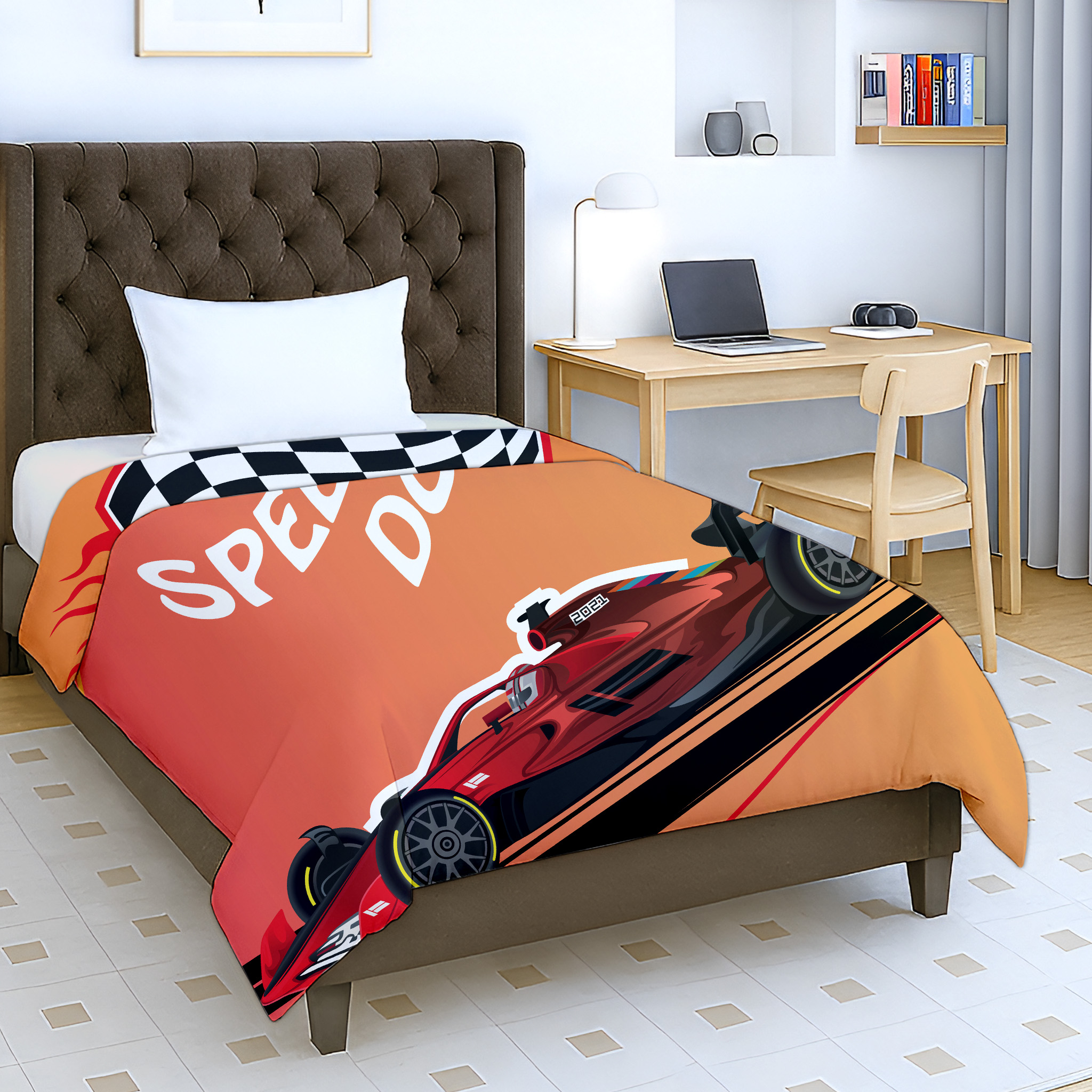 Give your child’s bedroom an exciting racing theme with the Jindal Home Kids Formula Race Car Dohar, featuring a bold sports car print that young car lovers will adore. The reversible 2-in-1 double-sided design offers two fun looks in one blanket, allowing you to flip it anytime for a fresh and playful style.
