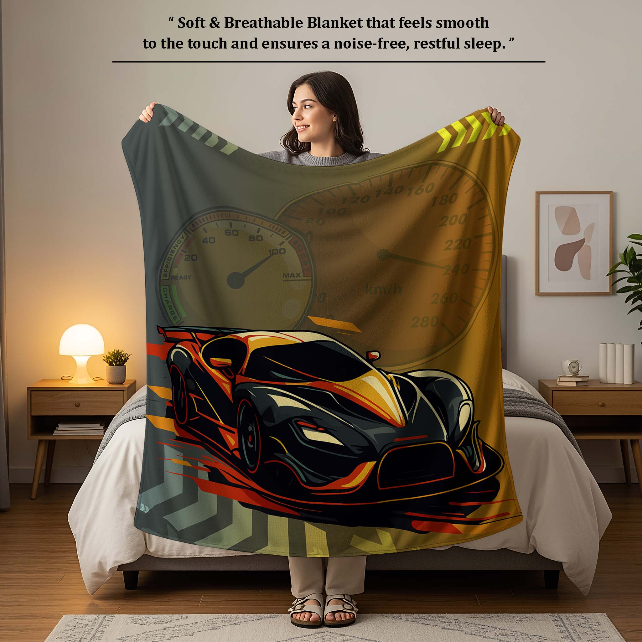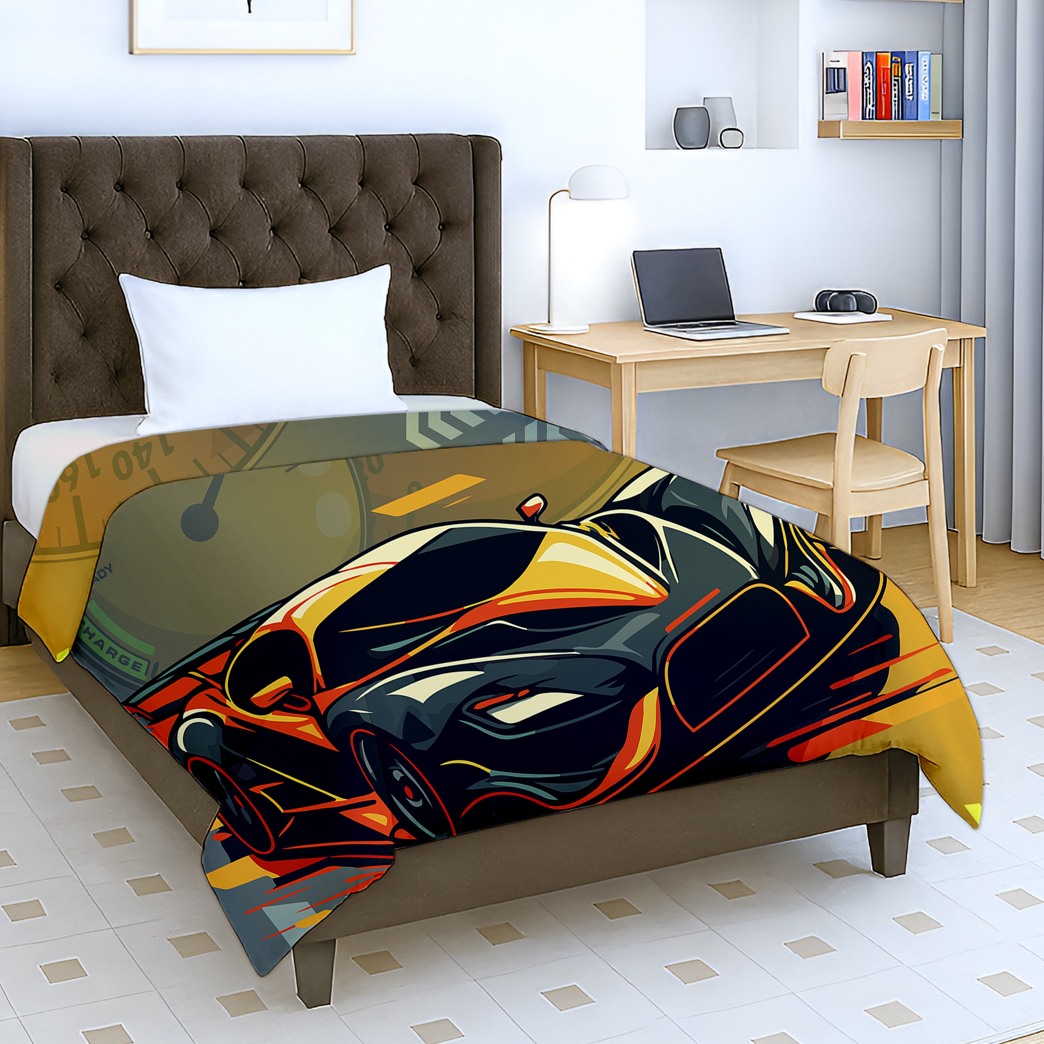 Add excitement to your child’s bedroom with the Jindal Home Kids Street Racer Cotton Dohar, featuring a bold super speed racing car design that creates a thrilling look for young car enthusiasts . The reversible 2-in-1 double-sided design offers two stylish looks in one blanket, allowing you to flip it anytime for a fresh and playful appearance.