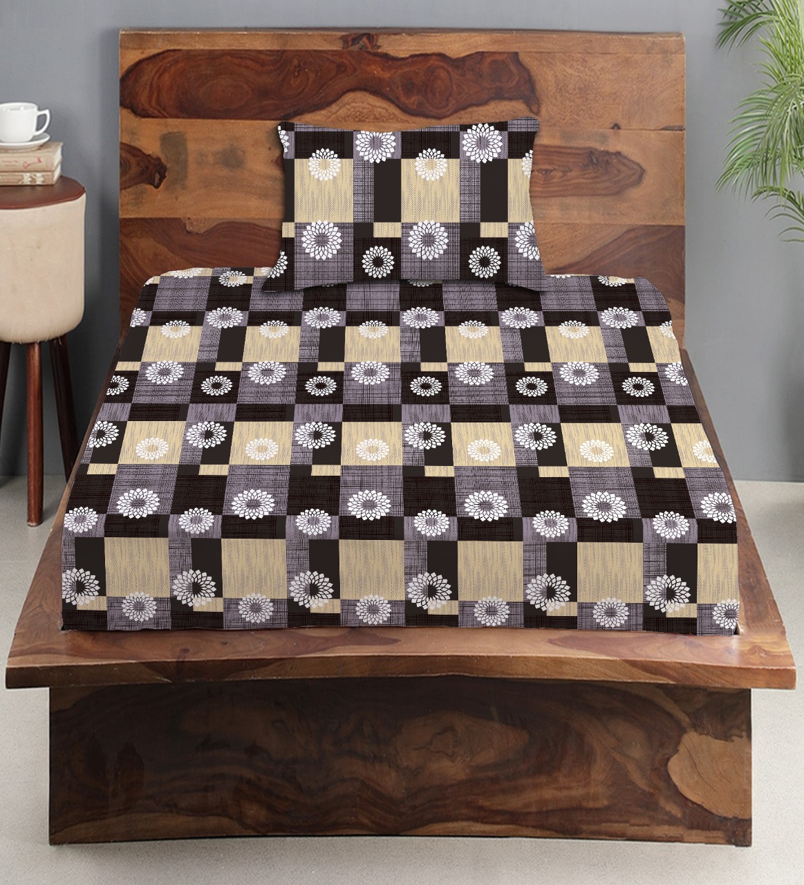 Life Style - 100 % Cotton Abstract Design Coffee Printed Single Size Bedsheet Set - 104 TC