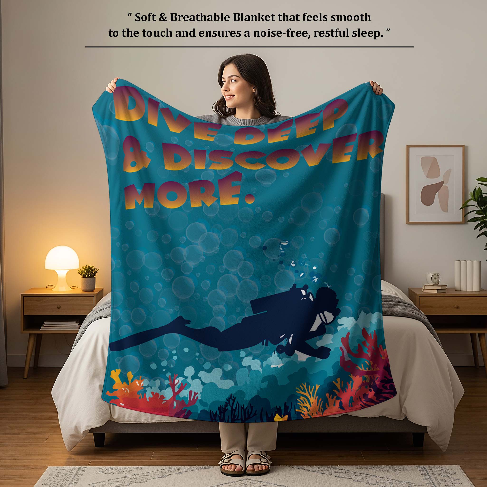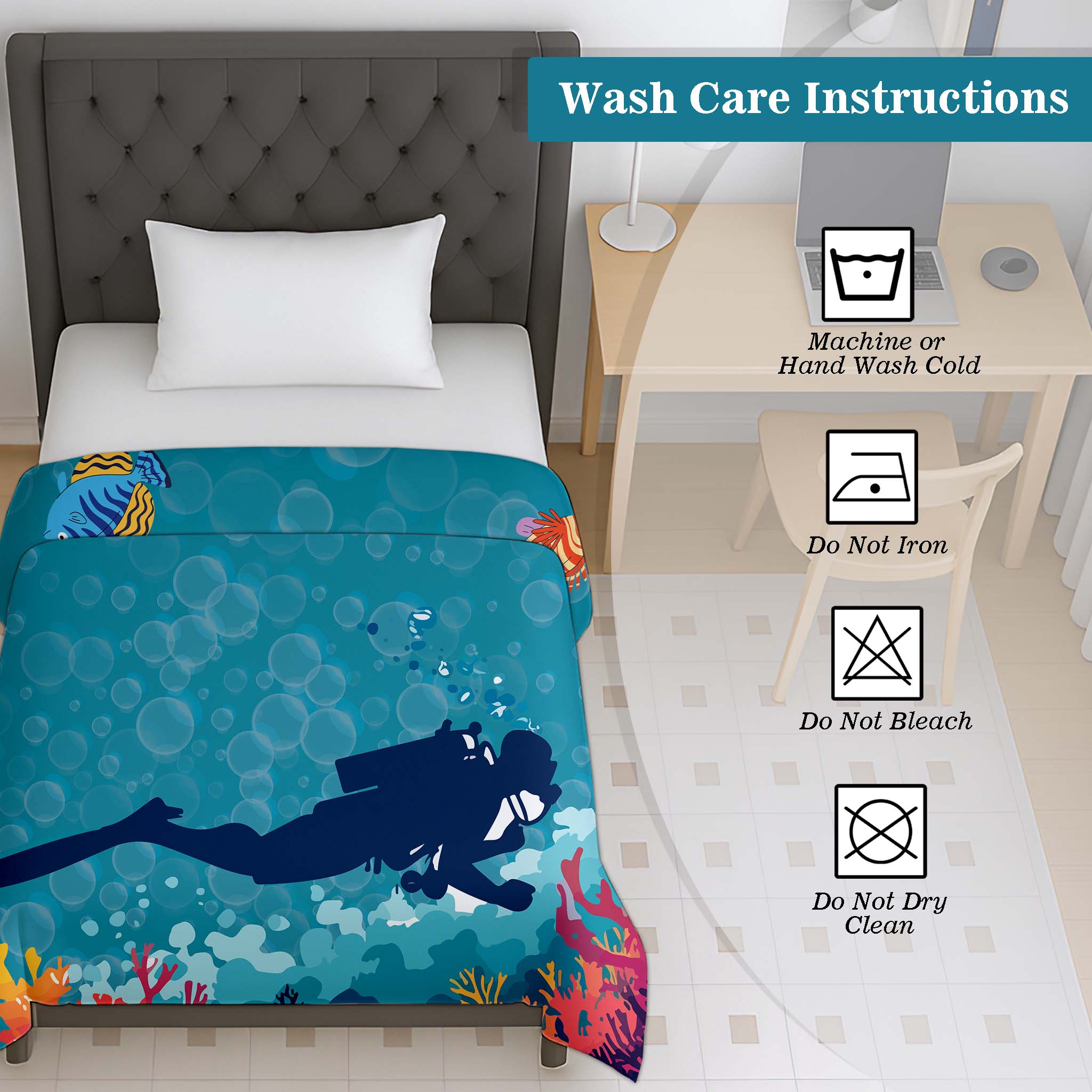 Kids Underwater Scuba Diver Print Reversible Dohar Soft Cotton Baby Blanket, 2-in-1 Double Sided Design, Lightweight Summer / AC Cotton Blanket for Babies, Toddlers & Kids | Breathable Kids Blanket | 39"x59" Inches