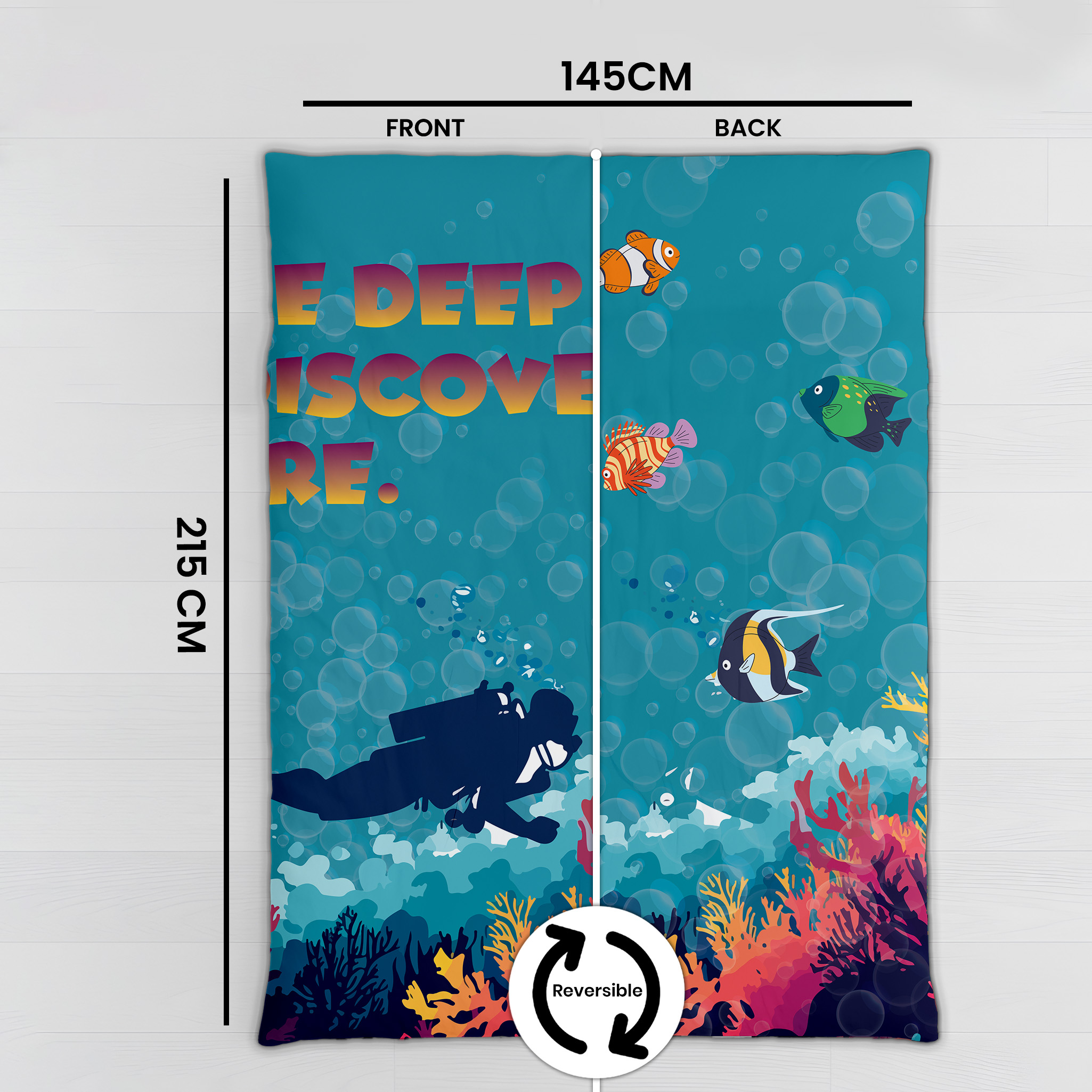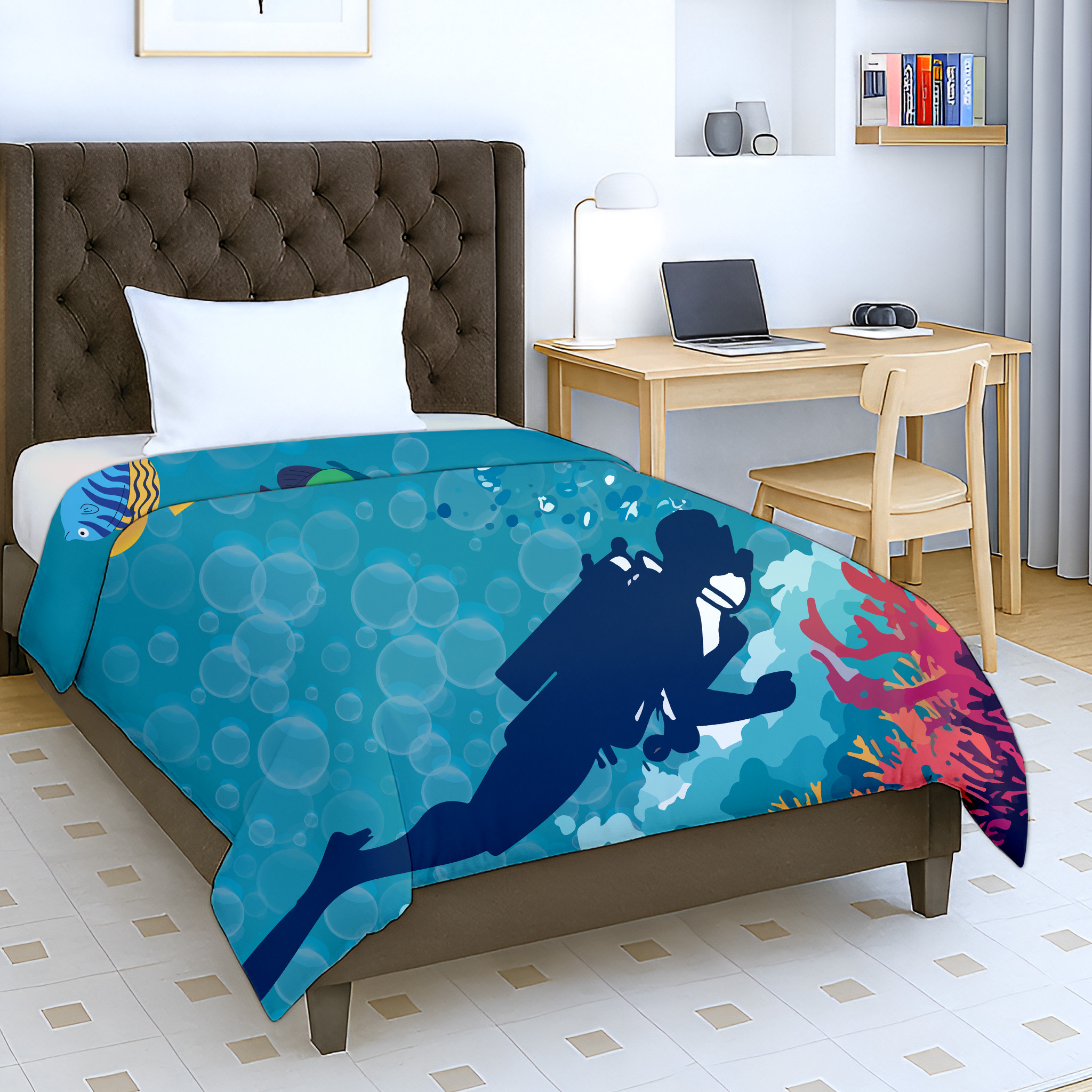 Underwater scuba-themed kids dohar with reversible design, made from soft breathable cotton—perfect for summer, AC use, and everyday kids bedding.