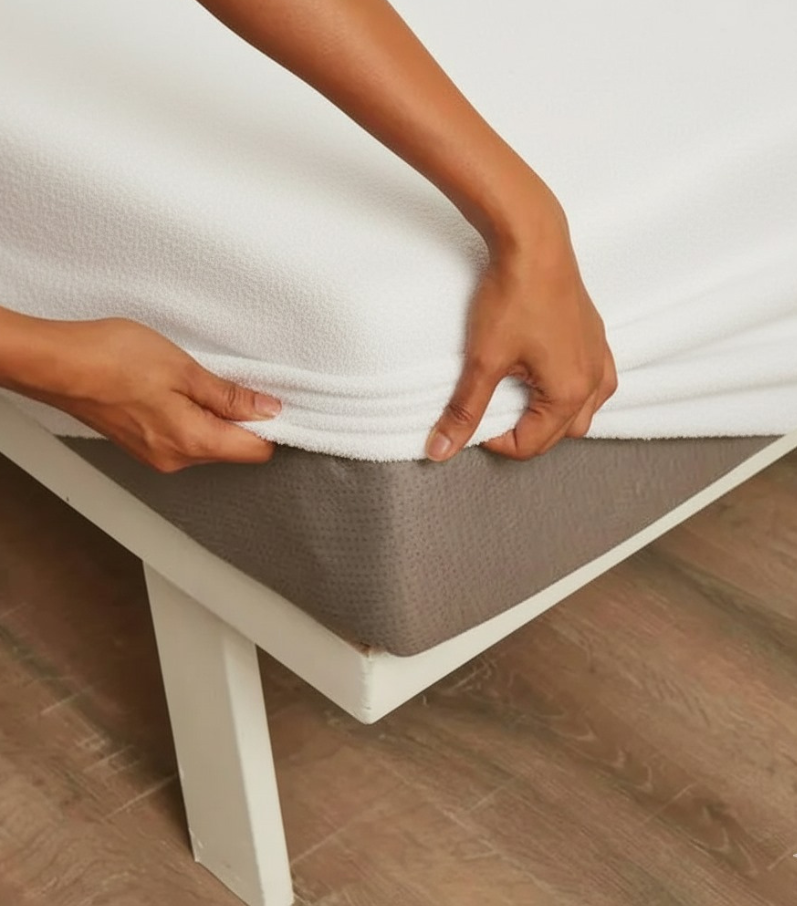 Our *Terry Dyed Mattress Protector* is crafted with high-quality cotton terry laminated fabric, designed to keep your mattress fresh, clean, and long-lasting. The top terry surface ensures softness and comfort, while the TPU lamination at the back provides 100% waterproof protection without any noise or discomfort.